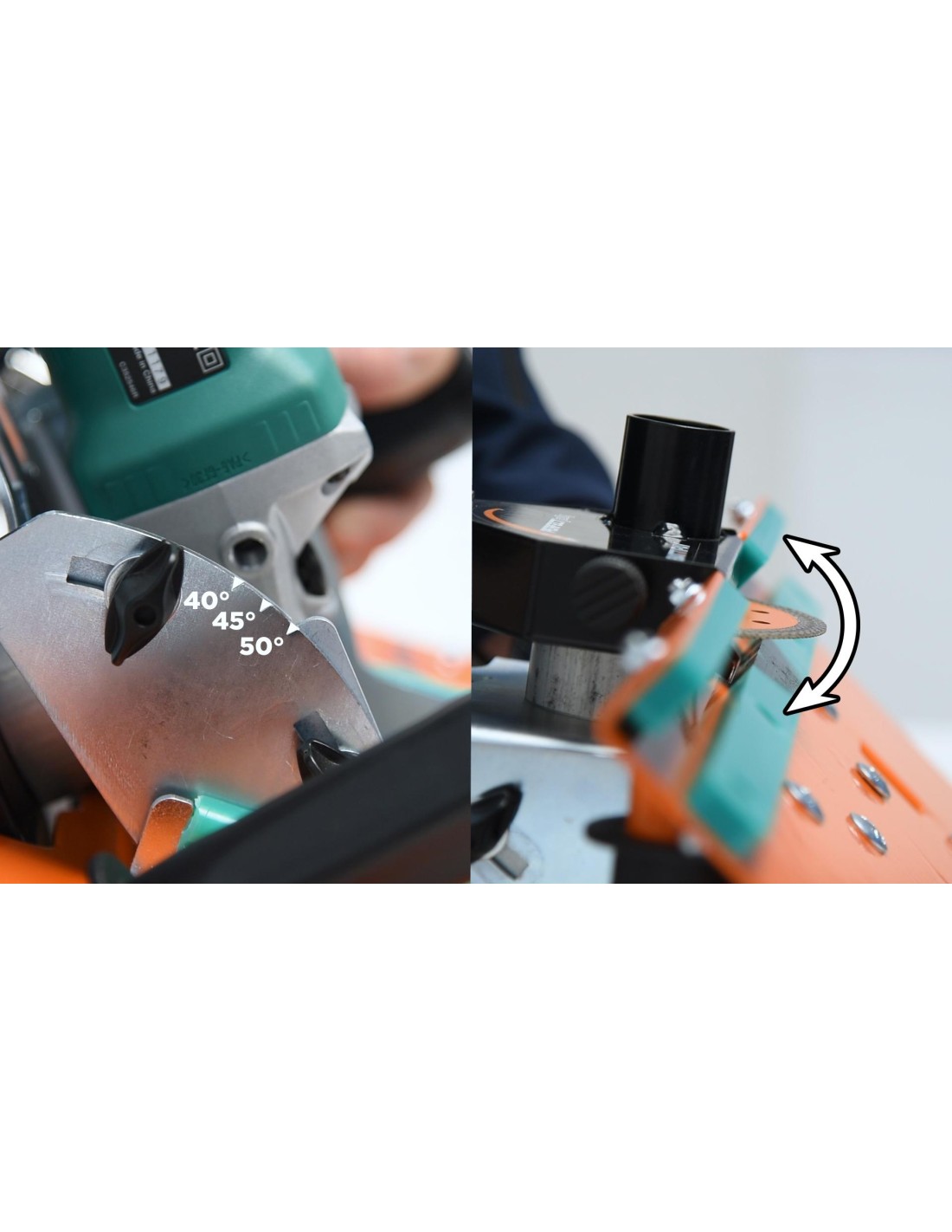 Adjustable cut for inclinations from 40° to 50°. 5/8 - 11 shaft connection. Can only be used with 115 mm diameter discs.
