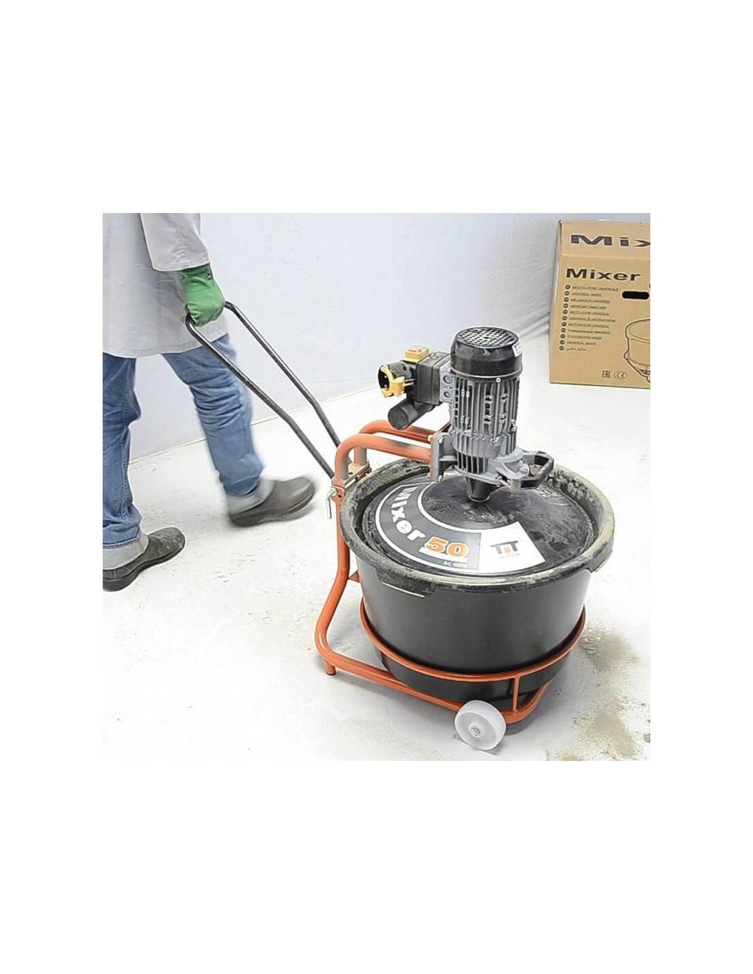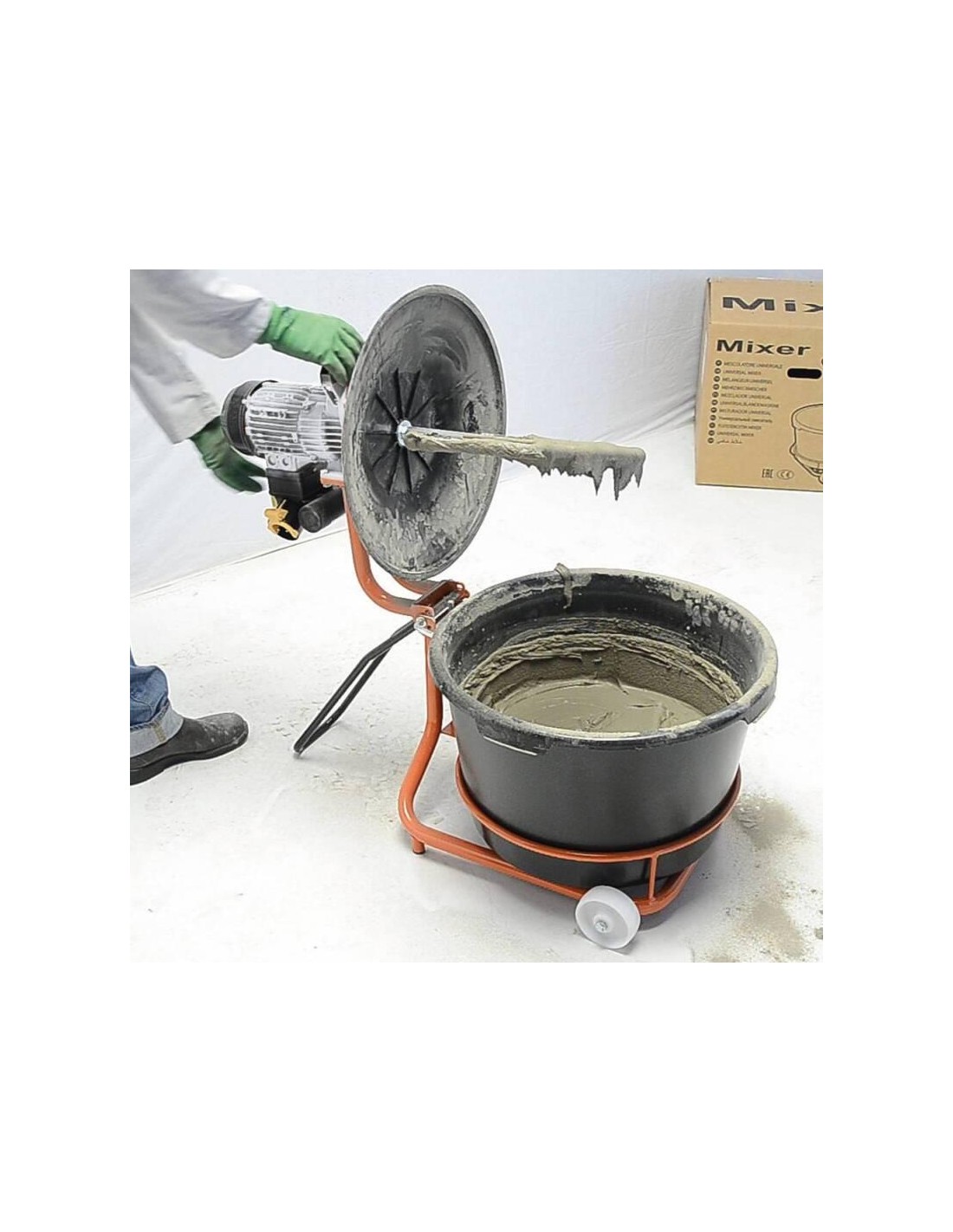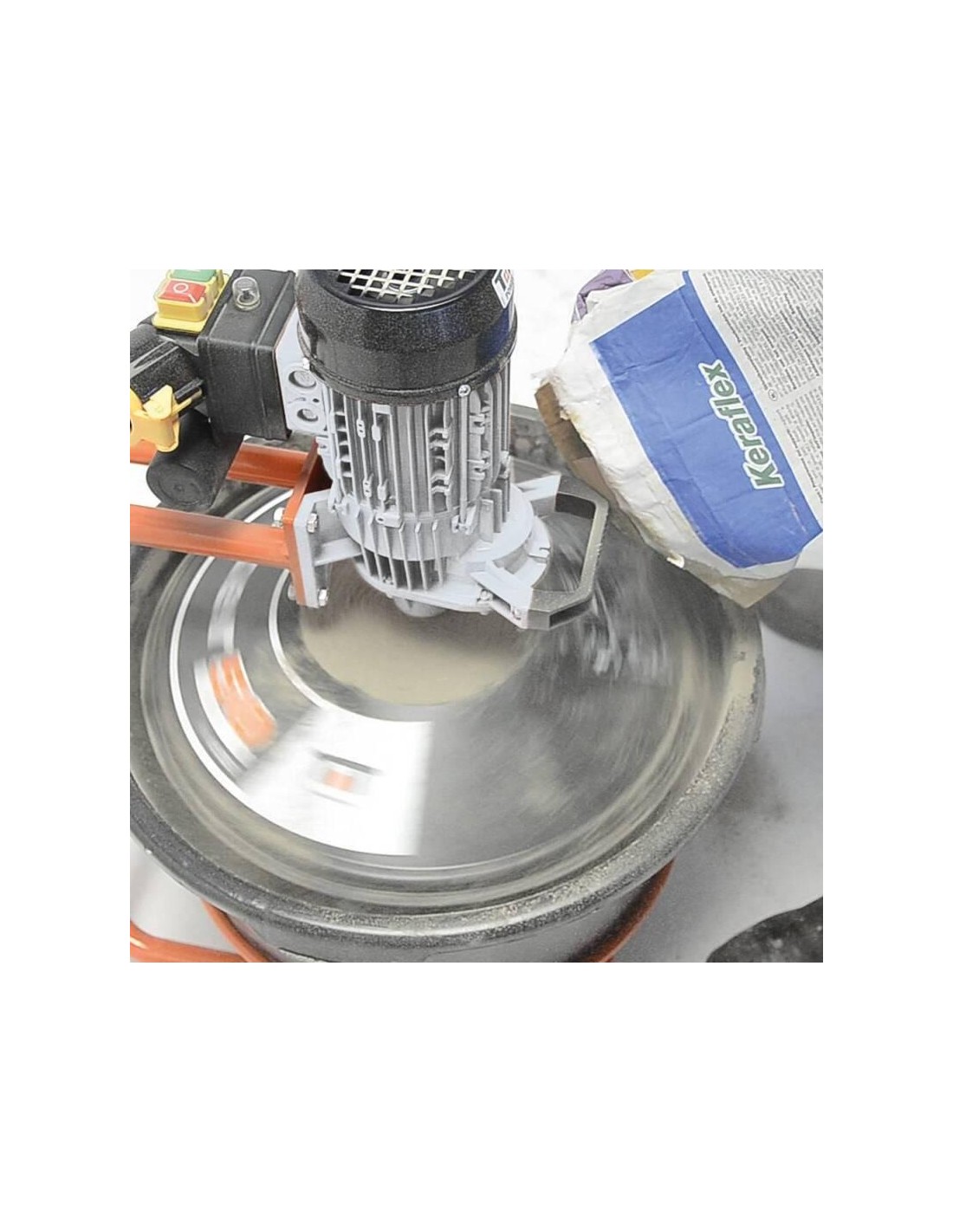 The mixers of the MIXER series from Battipav mix perfectly and homogeneously adhesives for tiles, cement, paint and resins. They work independently, kneading up to 50 kg of material. The powder is poured directly onto the plastic protection and centrifuged for correct mixing, obtaining a homogeneous mixture without lumps.