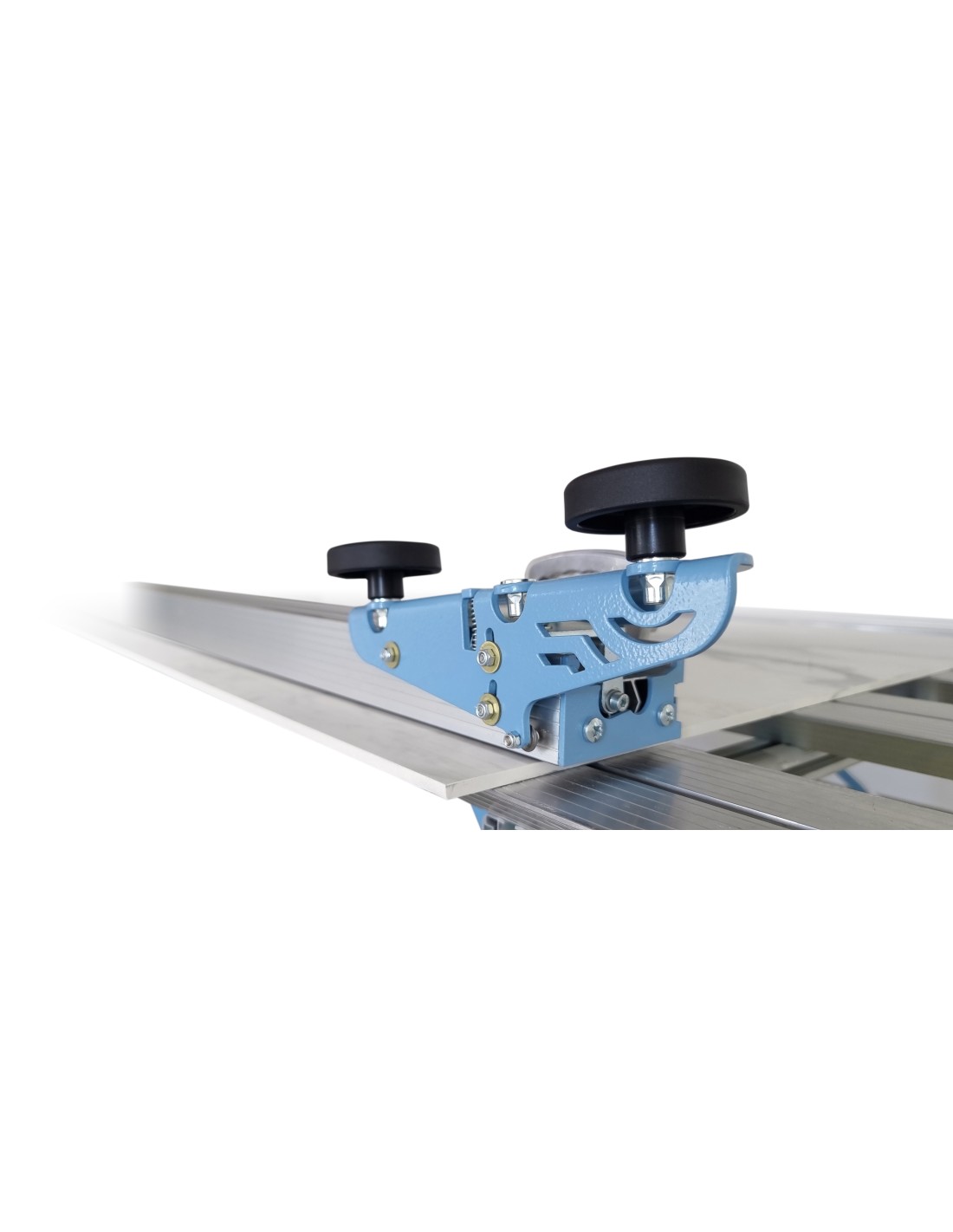 The aluminum guide, secured to the tile with 51F suction cups (stain-resistant, freely positionable, also suitable for rough surfaces), allows the carriage with a scoring wheel to slide.