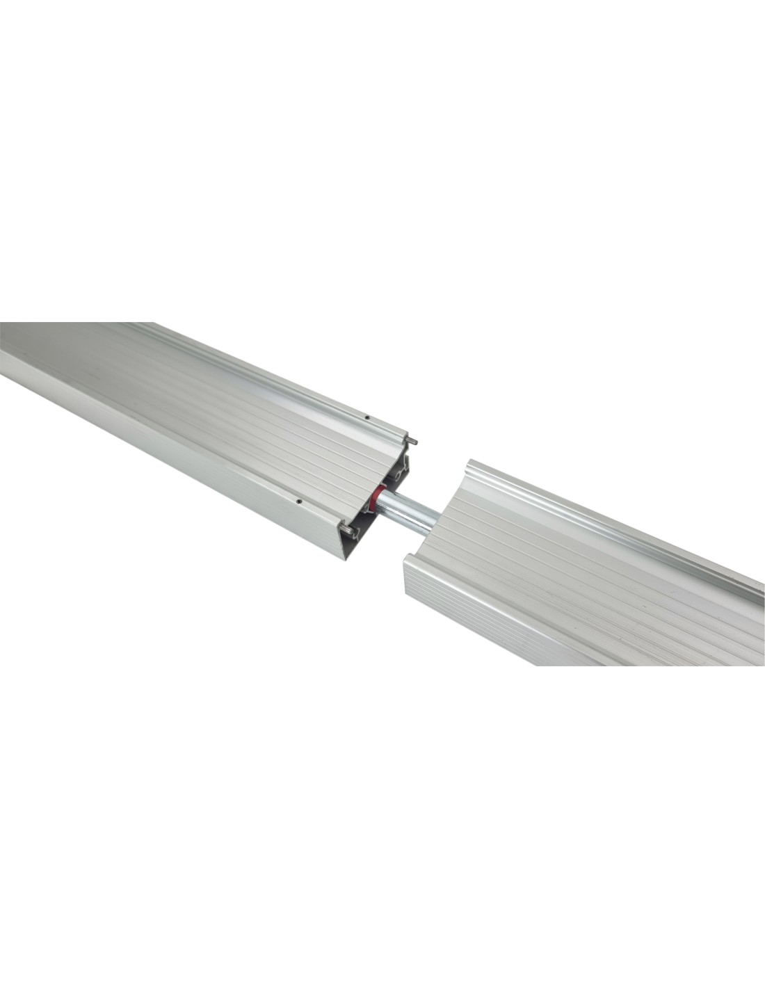 The lower guides are covered with non-slip, stain-resistant rubber. The guide rails are joined at three points in high-precision steel: the steel connecting joint, 19 mm in diameter and 480 mm in length, ensures great rigidity and straightness of the assembled extruded profiles.